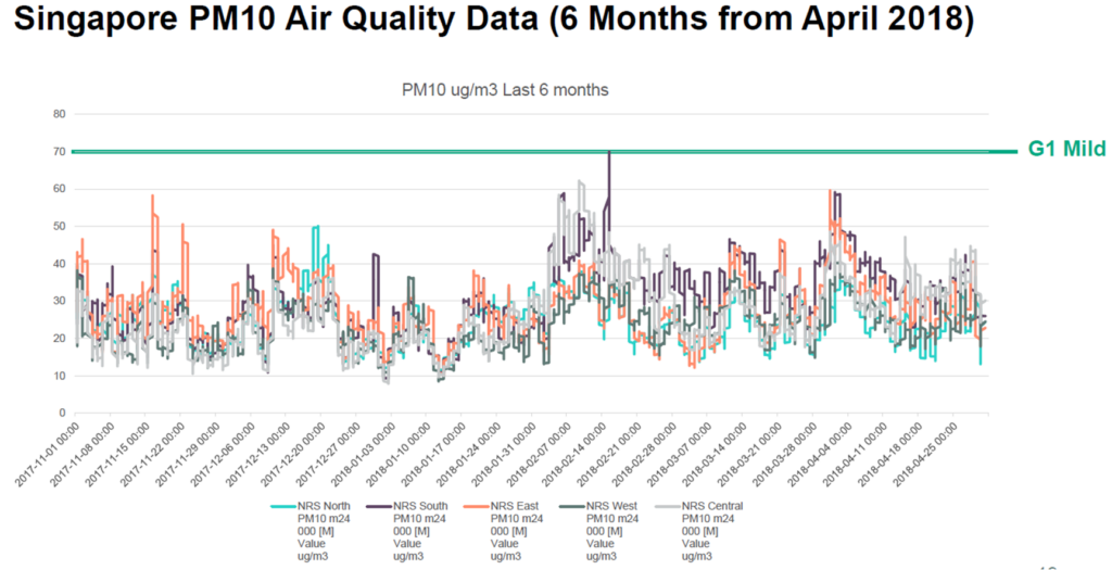 In 2018 I did a presentation on Cooling Architecture for Low PUE in Tropical Climates (refer to the figures below for air quality in Singapore then). The quality of air in Singapore was such that direct air cooling could be used. Could this be a time to relook at such an architecture again?